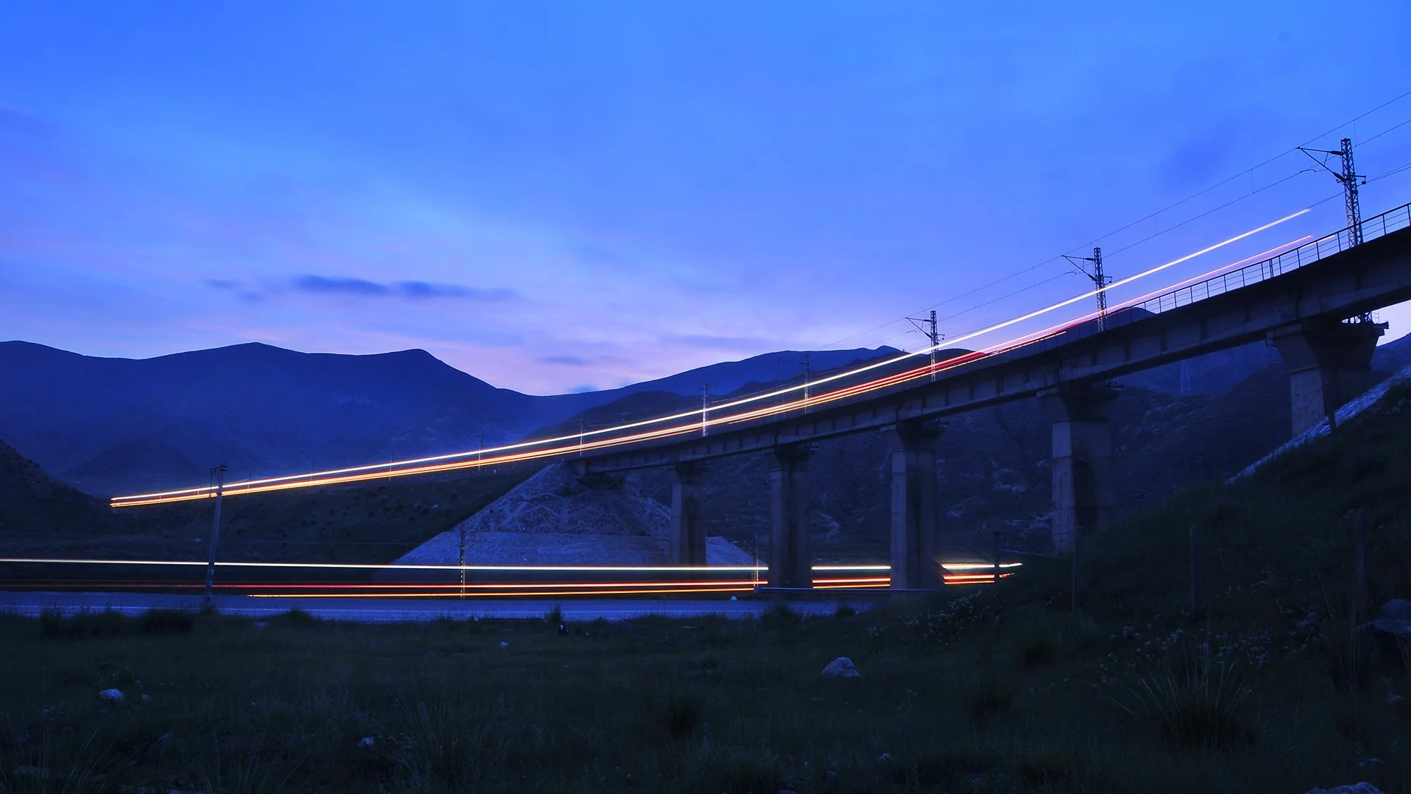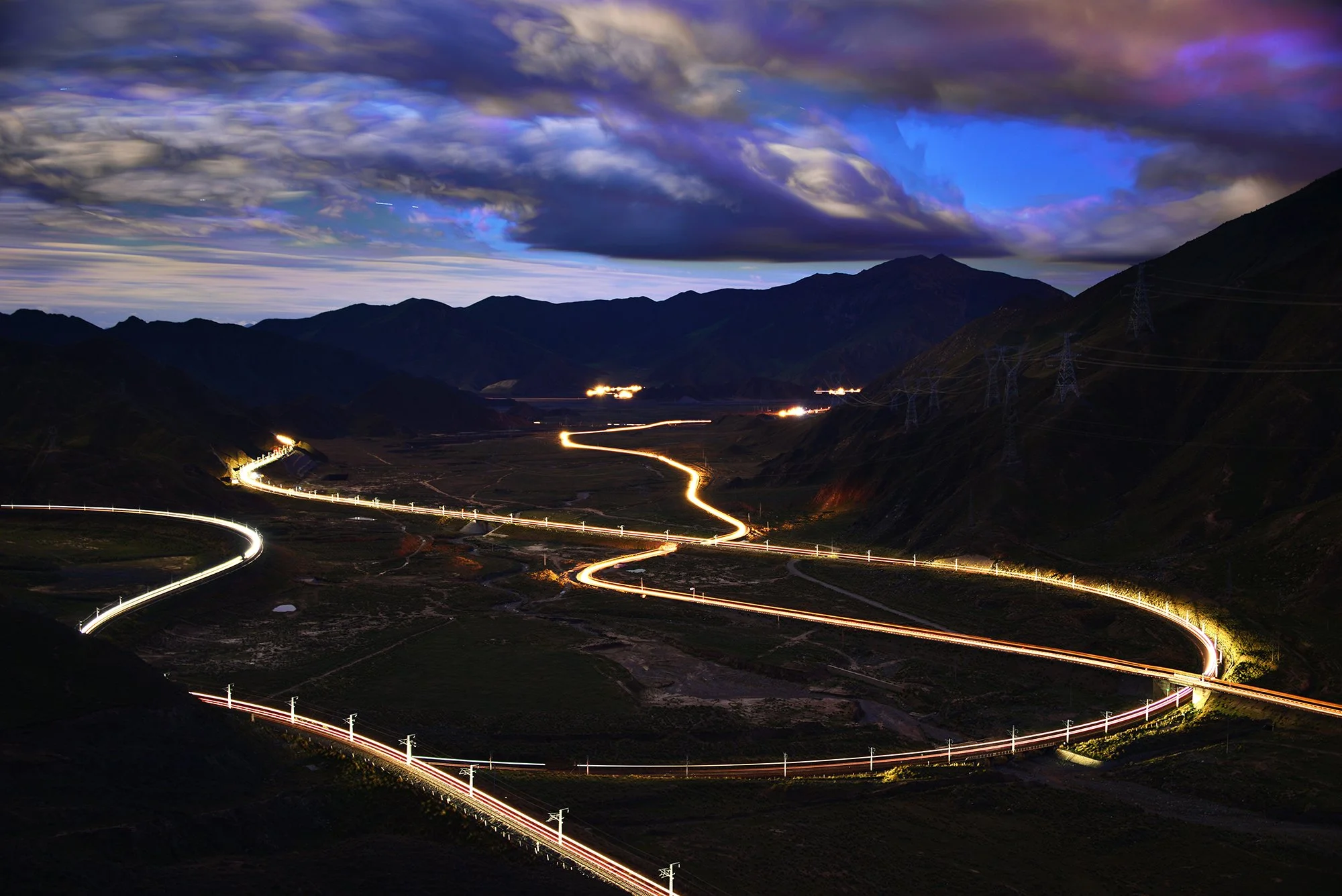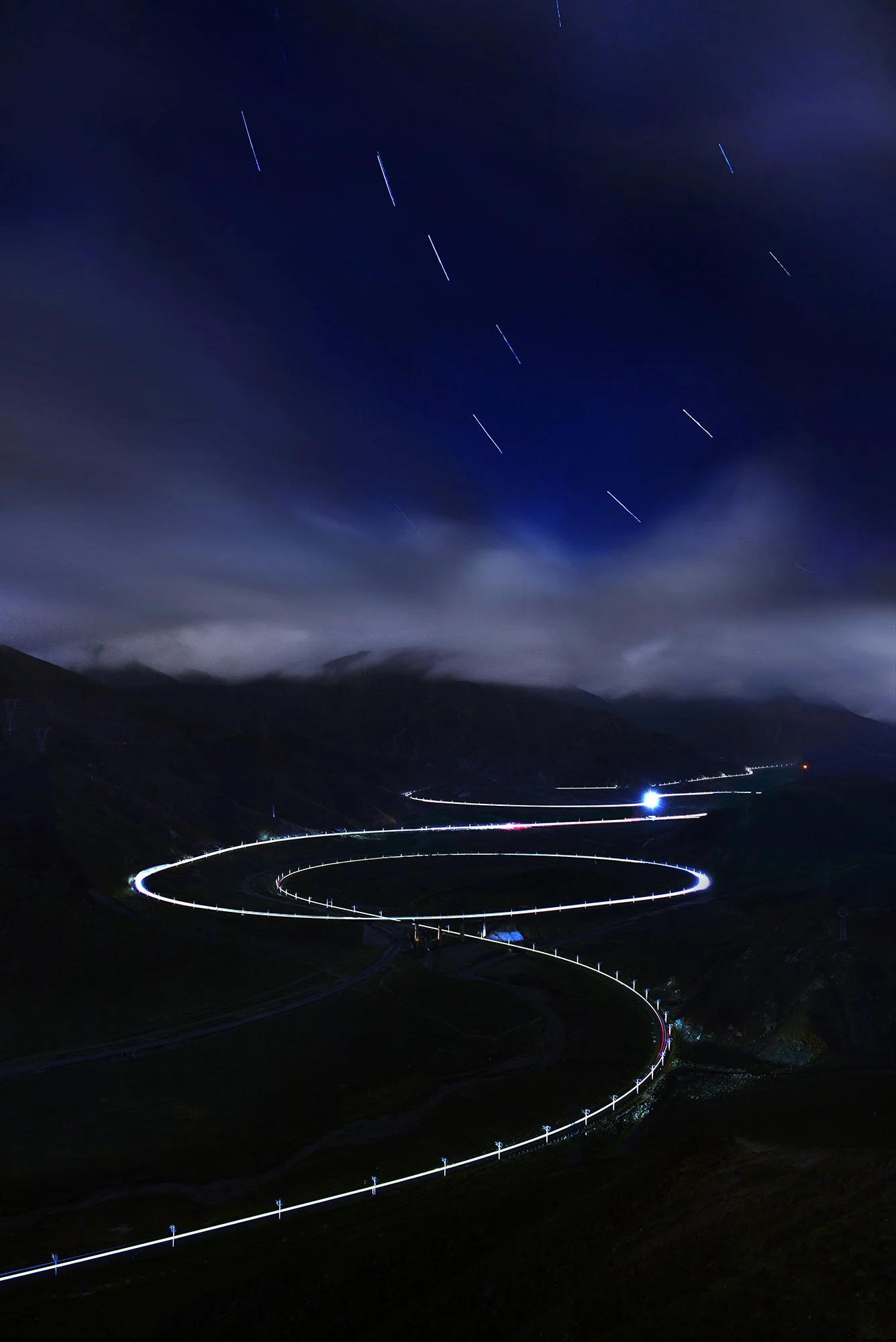 青藏鐵路二郎螺旋形展線夜景