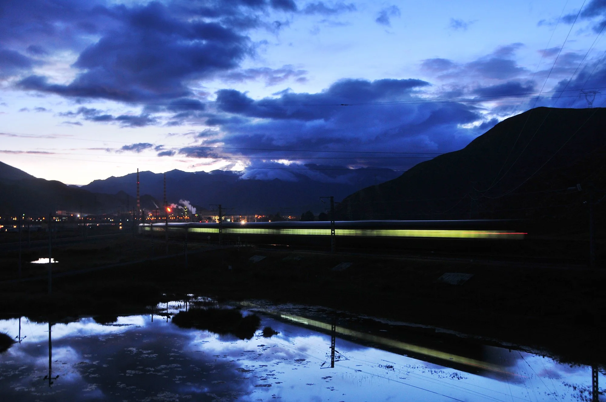夜幕降臨後,駛出關角山進入察汗諾車站的客車,這裡是關角山被拆除老線的終點,攝於2011年8月。