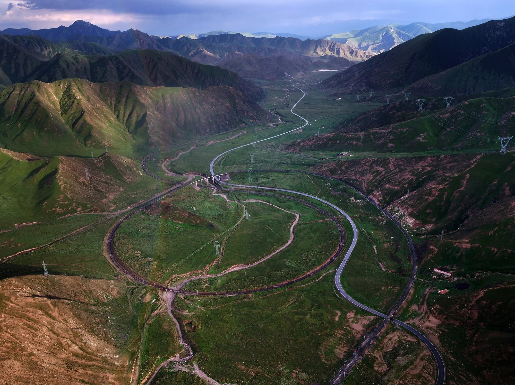 廢棄後的青藏鐵路二郎螺旋形展線全貌,