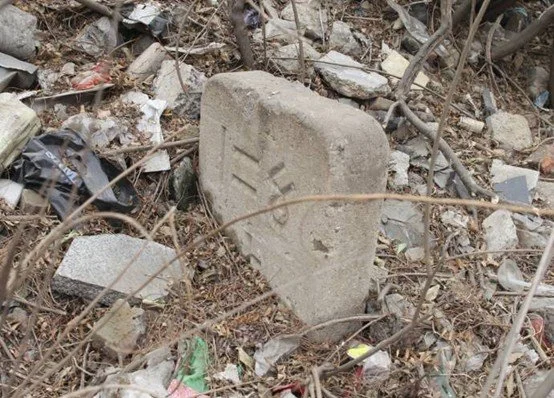 沿鐵路繼續向西約800米,在一堆枕石和灌木中,王嵬又發現一塊圓頭圓腦的水泥碑,蘇州碼的陰文已被灰膏抹平。