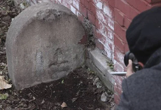 渣土摻雜著垃圾堆成小山,一塊方頭方腦的水泥碑半埋其中,寬60.5厘米、厚17厘米。水泥牌西面顯示“〢〥〇”符號,用工兵鏟下挖10厘米,字符下面又露出一個“下”字。“這是一塊鐵路坡道牌,上面的陰文符號是中國獨有的蘇州碼,歷史超百年!”王嵬難掩興奮之情。