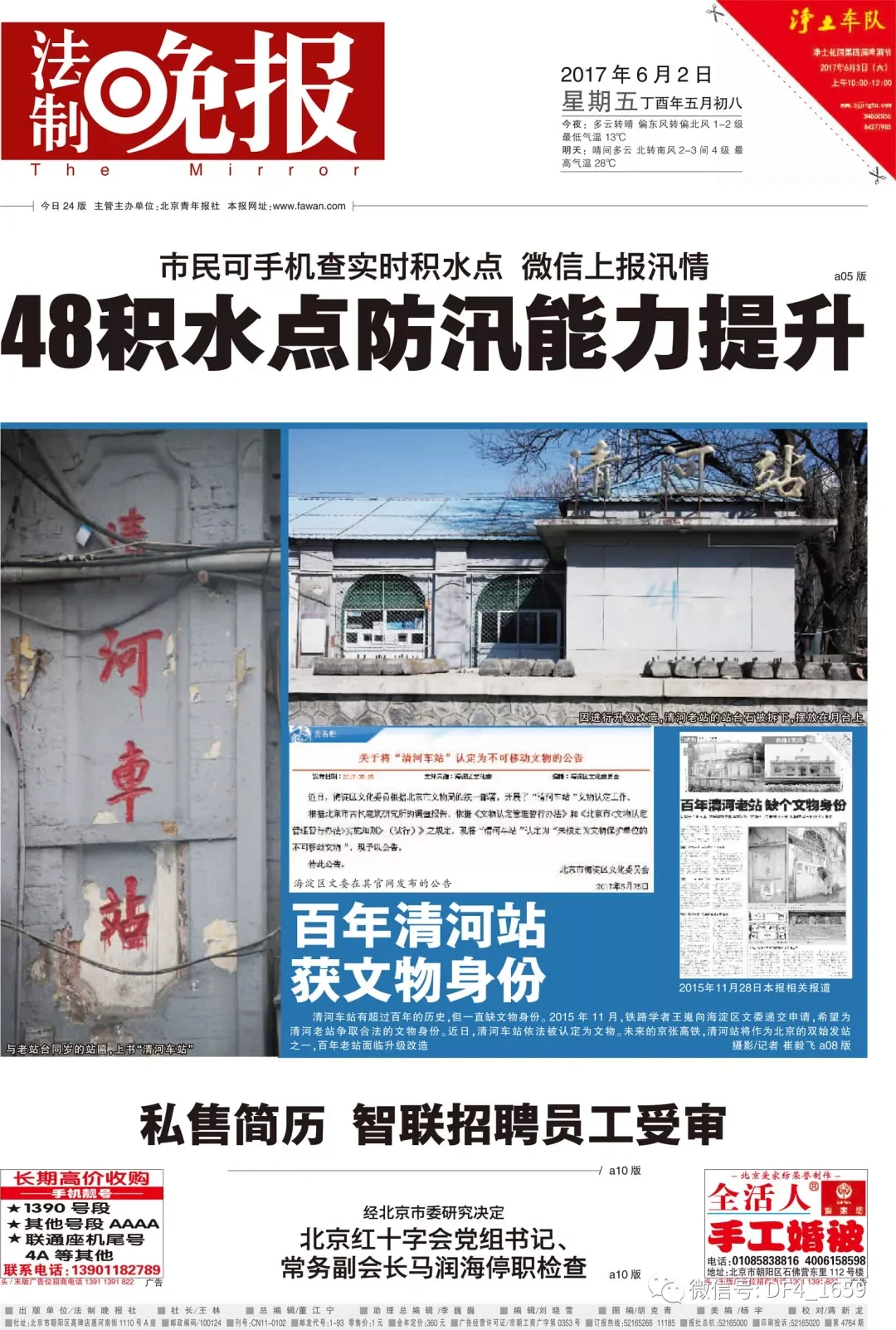 王嵬向海淀區文委遞交不可移動文物認定申請,為清河站爭取到了法定文物身份,《法制晚報》曾進行全程報道。
