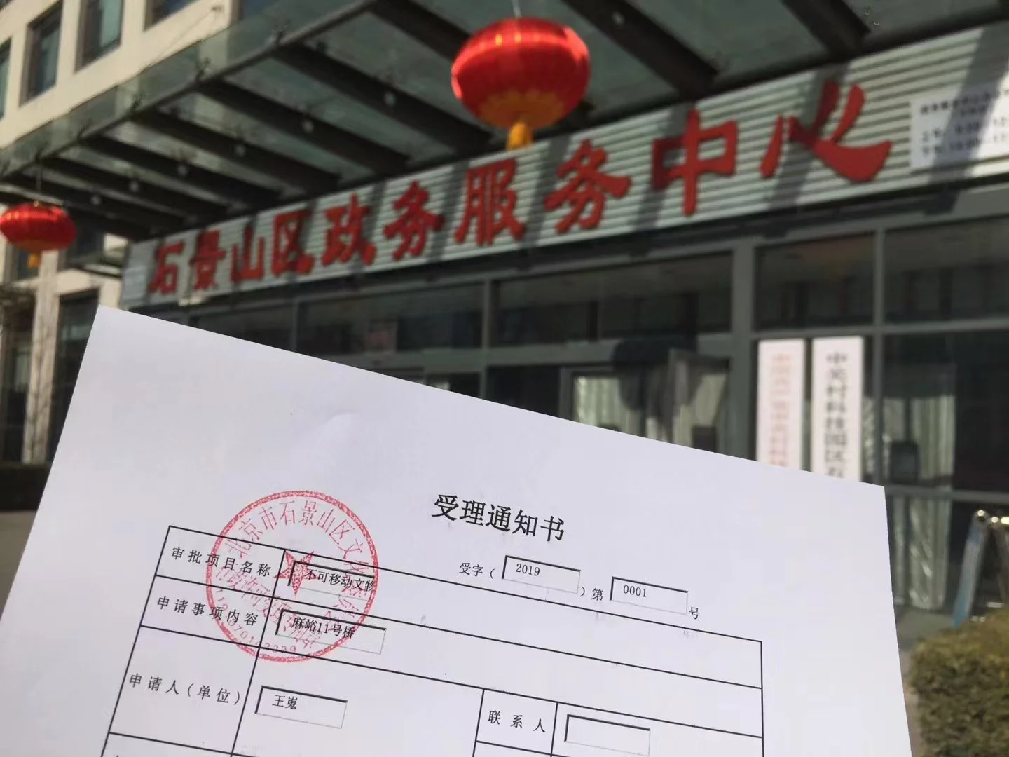 王嵬向石景山區文物科遞交關於西黃村車站老站房、麻峪鐵路橋的《不可移動文物認定申請》