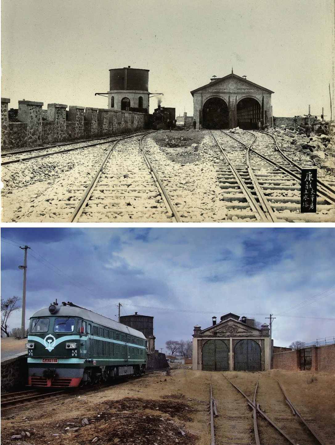 圖為京張鐵路康莊百年歷史變遷對比,其機車房、上水塔還未獲得官方文物認定