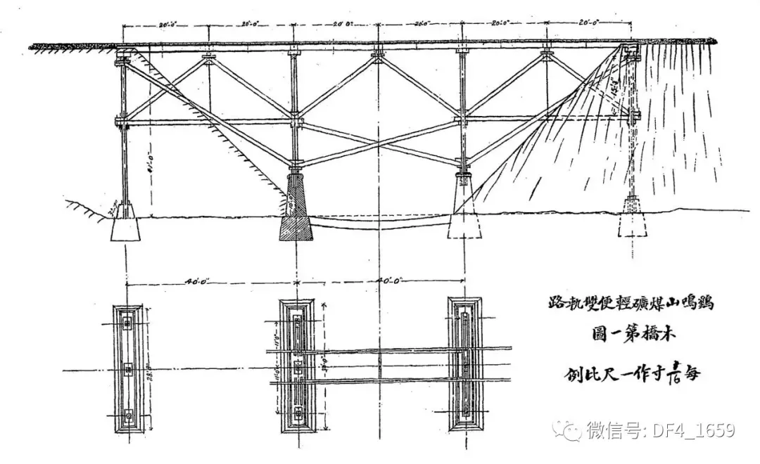 雞鳴山支線窄軌段,曾有一座“木、混凝土組合結構橋梁”,詹天佑在《京張鐵路工程紀略》中稱之為橛號1號橋。此橋全長36.5米,跨越油黃溝(當地人今稱鄧槽溝),設有3孔,中間兩座橋墩為洋灰混合土築成,上架木製梁柱。但隨著雞鳴山支線荒廢,橋上1935年便不再走煤車,上世紀60年代,因河道、農田改造等原因,木製梁柱被拆除。可能是因為太過堅固,兩座水泥橋墩倖存下來。