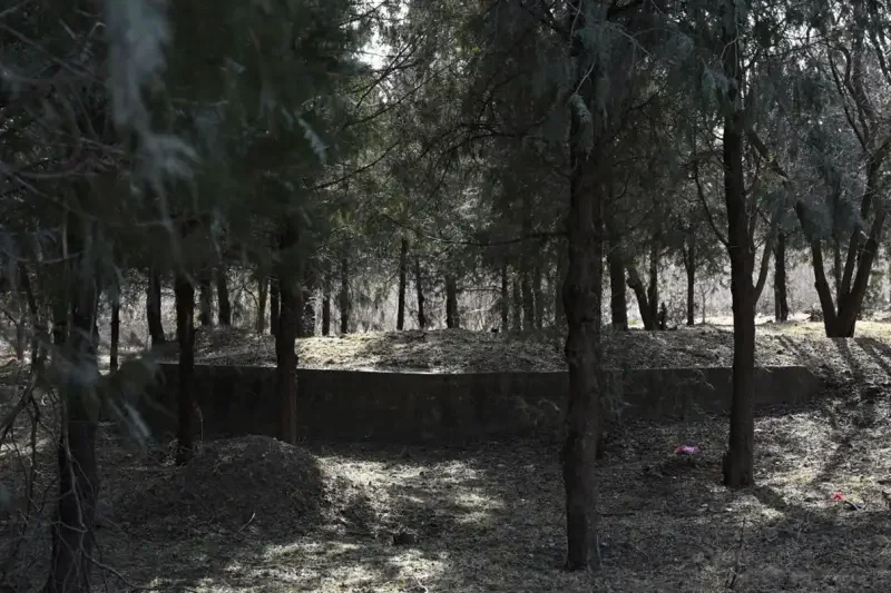 近日,北青報記者跟隨王嵬,來到豐臺區張家墳村北部一片丘陵坡,這裡位置偏僻、人跡罕至。王嵬對照1945年的航拍照片,基本確定了鐵路和站台的位置,但未能發現任何建築遺跡,而在推斷站台位置的附近,一座五孔橋引起了他的注意。