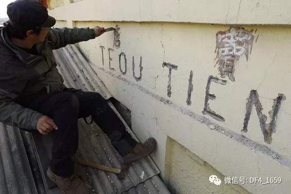 王嵬用刮刀清理出山牆上的站名、以及威妥瑪音標